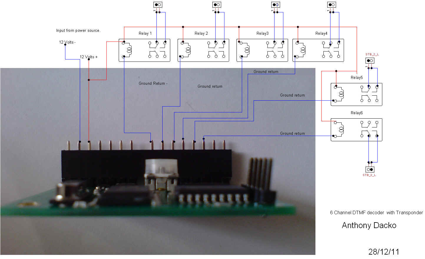 tell you witch relays are on by switching the LED's on for that relay see Schematic